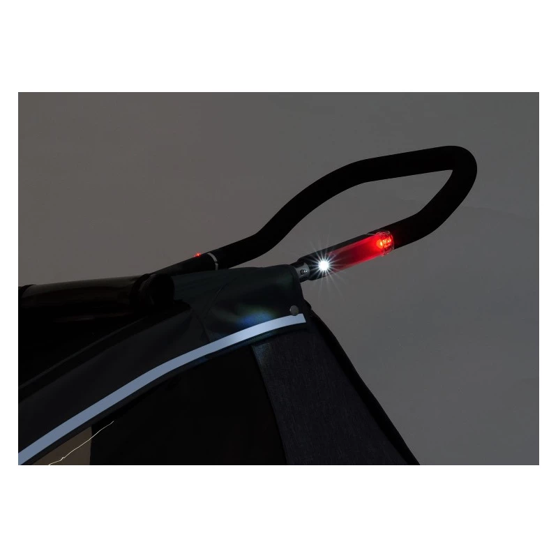 La remorque peut accueillir jusqu’à 2 enfants et possède une capacité de poids de 45 kg.