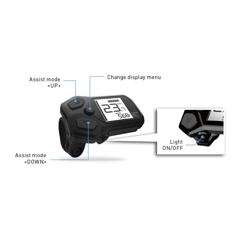 L’appareil fonctionne également comme une commande d’assistance, permettant au cycliste d’ajuster le niveau d’assistance à la hausse ou à la baisse avec de gros boutons faciles à trouver.