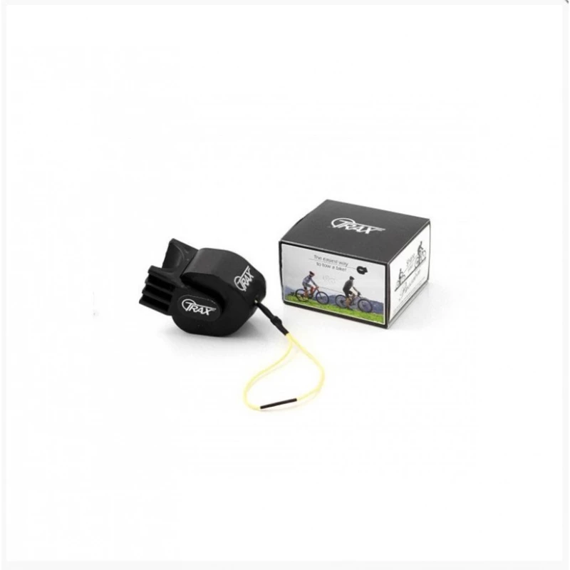 Un dispositif conçu pour être monté sur la tige de selle de n’importe quel vélo, afin qu’il puisse être remorqué sur un autre vélo.