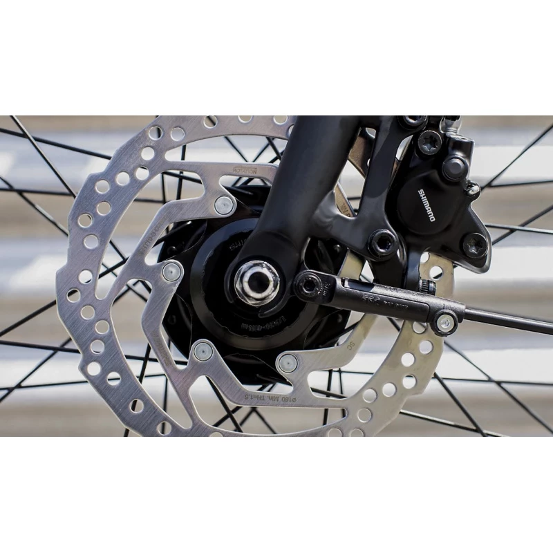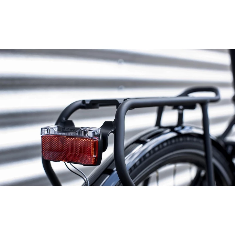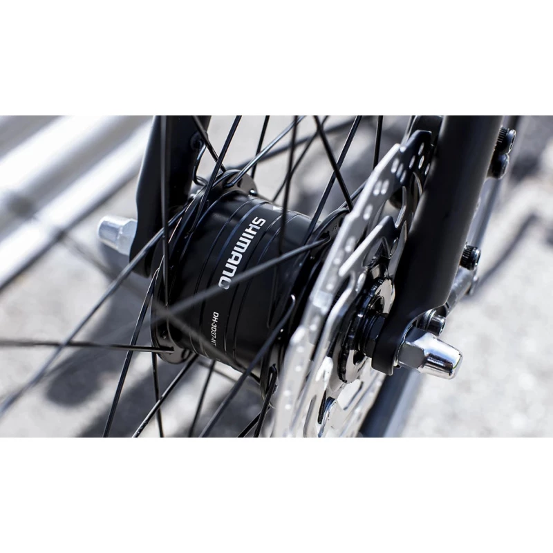 Un cadre en aluminium léger Alpha Smooth avec une géométrie confortable mais néanmoins active, une transmission par courroie Gates CDN et un moyeu interne 8 vitesses Shimano Nexus, un moyeu avant Shimano Nexus Dynamo qui alimente le feu avant et une fonctionnalité de feu de position qui permet de garder le feu arrière allumé même à l’arrêt. Sans oublier, de puissants freins à disque hydrauliques, des garde-boue, des poignées ergonomiques confortables, une potence réglable, un porte-bagage compatible MIK, et des pneus 40C larges et stables avec des flancs de pneu réfléchissants.