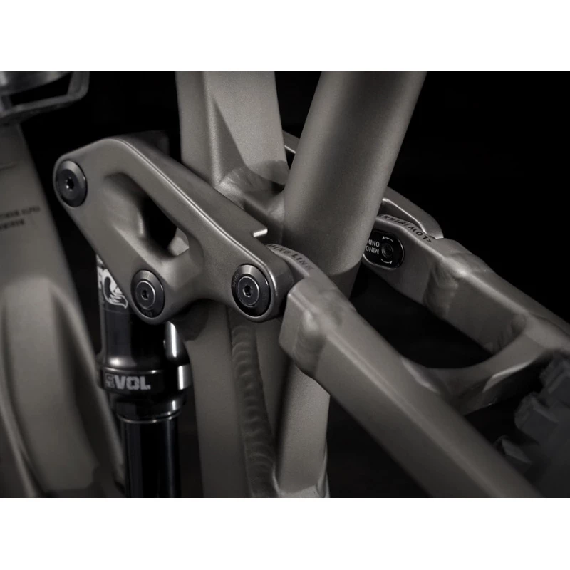 Les suspensions améliorées avec leur débattement de 150 mm à l’avant et de 140 à l’arrière lissent les descentes accidentées et techniques tandis que le cadre aluminium léger préserve la vivacité dans les côtes.