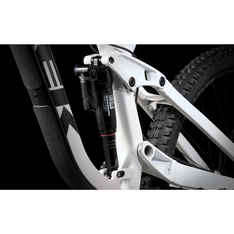 Un cadre robuste en alliage d’aluminium, un débattement de 200 mm à l’arrière avec l’amortisseur RockShox Super Deluxe Ultimate DH, un amortisseur RockShox Boxxer Ultimate de 200 mm avec Charger 2.1 RC2, des freins à 4 pistons Code RSC, une transmission SRAM X01 7 vitesses et un cintre en carbone.