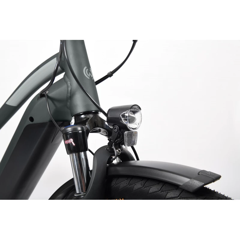 De robustes pneus Continental de 27,5” et une fourche aluminium à suspension à l’avant vous permettront d’atteindre votre destination sereinement, même hors des sentiers battus.
